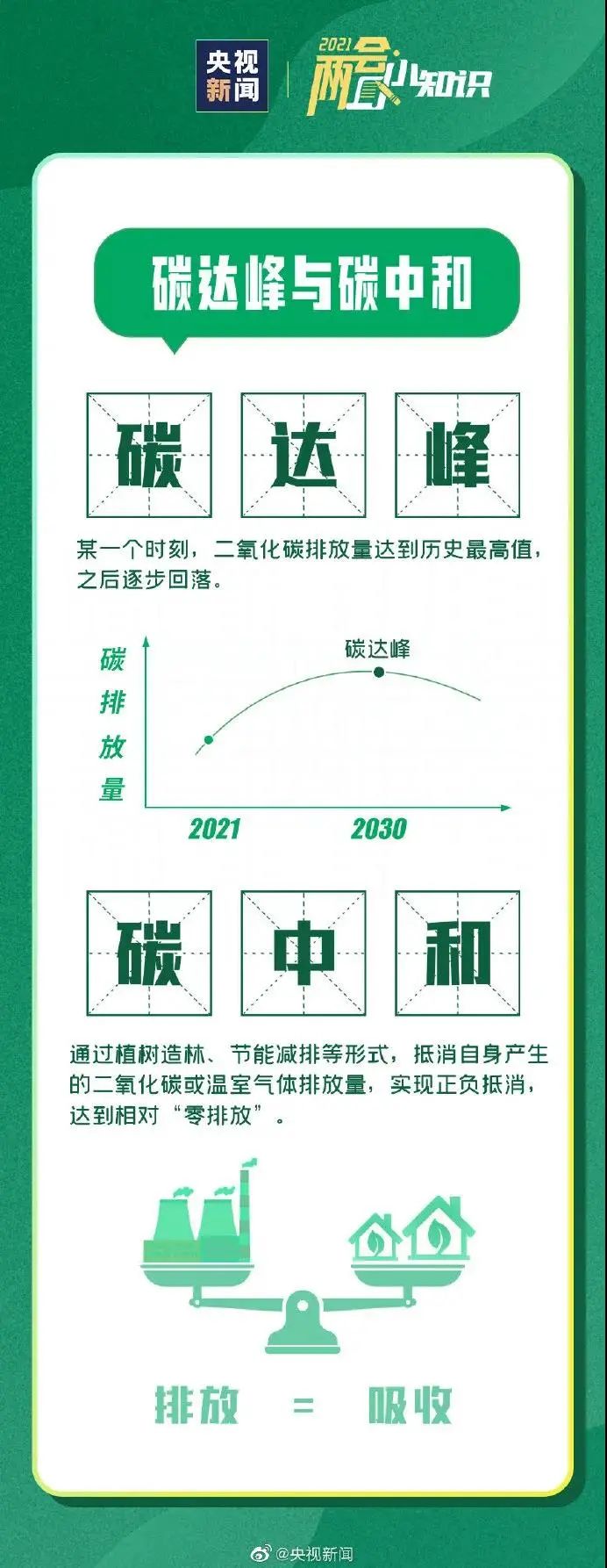 為應(yīng)對氣候變化,我國提出“二氧化碳排放力爭于2030年前達到峰值,努力爭取2060年前實現(xiàn)碳中和”等莊嚴的目標承諾。“做好碳達峰、碳中和工作”是我國2021年重點任務(wù)之一。“碳達峰”“碳中和”究竟是怎么一回事,為何要耗時40年?戳圖,一起學知識↓↓↓