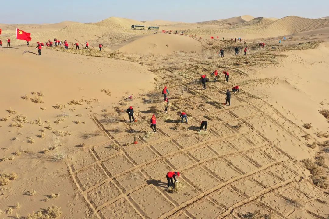 一個(gè)武威人,半個(gè)治沙人。每年春秋季節(jié),一支支義務(wù)壓沙隊(duì)伍向沙漠腹地挺進(jìn),大片草方格沙障從無(wú)到有漸次鋪開(kāi),從腳下向沙漠深處延伸,廣袤的沙漠如同披上了金色的鎧甲。近年來(lái),武威市牢固樹(shù)立綠水青山就是金山銀山的理念,堅(jiān)定不移走生態(tài)優(yōu)先、綠色發(fā)展之路,科學(xué)布局“南護(hù)水源、中保綠洲、北固風(fēng)沙”,持續(xù)大規(guī)模開(kāi)展國(guó)土綠化和防沙治沙,多途徑增加林草資源總量,加快推進(jìn)生態(tài)大市建設(shè)。