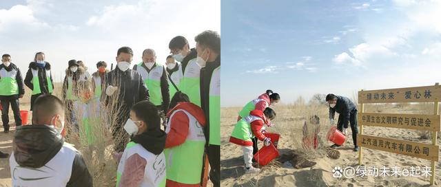 2022年12月24日,由上汽通用汽車和中國(guó)生態(tài)文明研究與促進(jìn)會(huì)以及武威市環(huán)境保護(hù)產(chǎn)業(yè)協(xié)會(huì)聯(lián)合發(fā)起的“綠動(dòng)未來(lái)”環(huán)保公益平臺(tái),發(fā)動(dòng)甘肅當(dāng)?shù)氐闹驹刚撸瑪y手治沙英雄、“全國(guó)勞動(dòng)模范”石述柱的傳人,在甘肅民勤縣騰格里沙漠種下10,000余棵梭梭樹(shù),落成又一片“綠動(dòng)未來(lái)愛(ài)心林”。